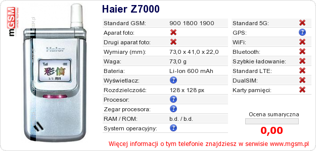 Dane telefonu Haier Z7000 na Twojej stronie