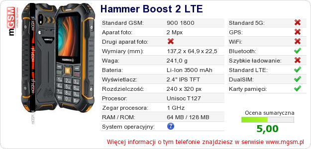 Dane telefonu Hammer Boost 2 LTE na Twojej stronie