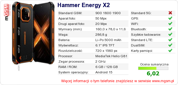 Dane telefonu Hammer Energy X2 na Twojej stronie