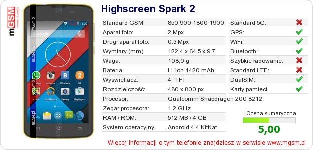 Dane telefonu Highscreen Spark 2 na Twojej stronie