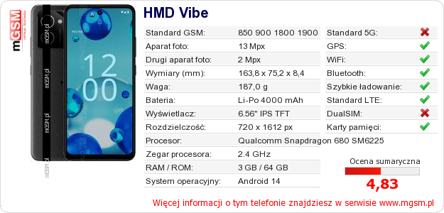 Dane telefonu HMD Vibe na Twojej stronie