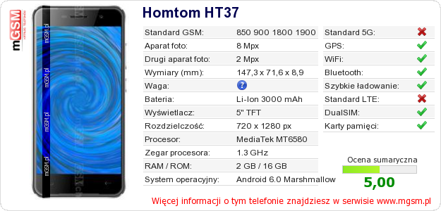 Dane telefonu Homtom HT37 na Twojej stronie