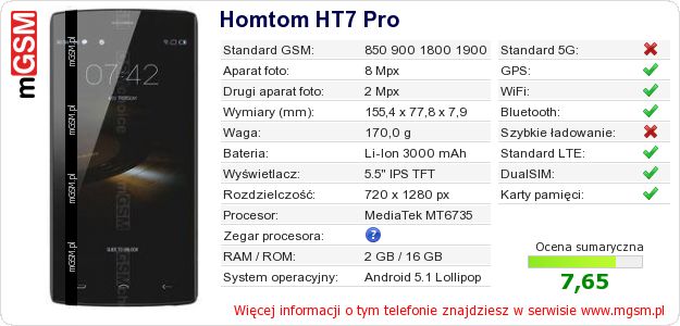 Dane telefonu Homtom HT7 Pro na Twojej stronie