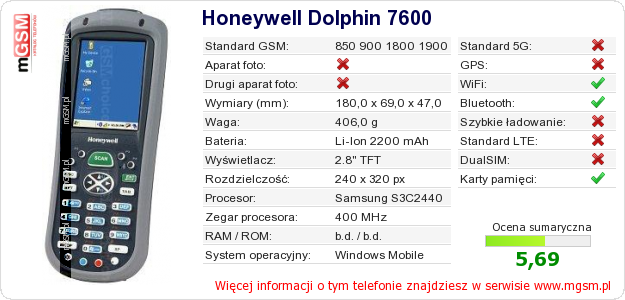 Dane telefonu Honeywell Dolphin 7600 na Twojej stronie