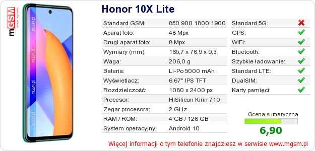 Dane telefonu Honor 10X Lite na Twojej stronie