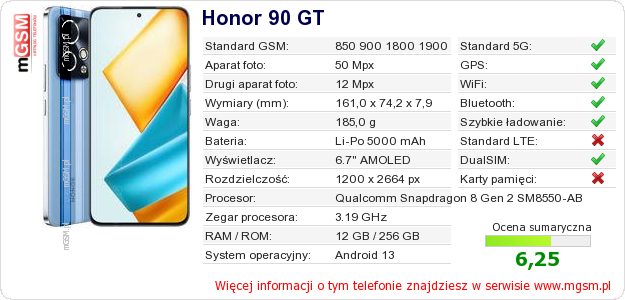 Dane telefonu Honor 90 GT na Twojej stronie
