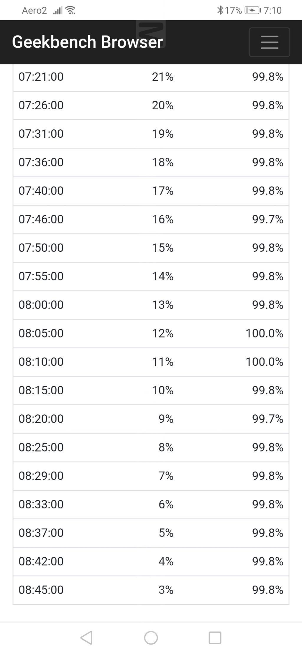 - wynik Geekbench (full discharge) - 5290 punktów, rozładowanie po 8 godzinach i 45 minutach,