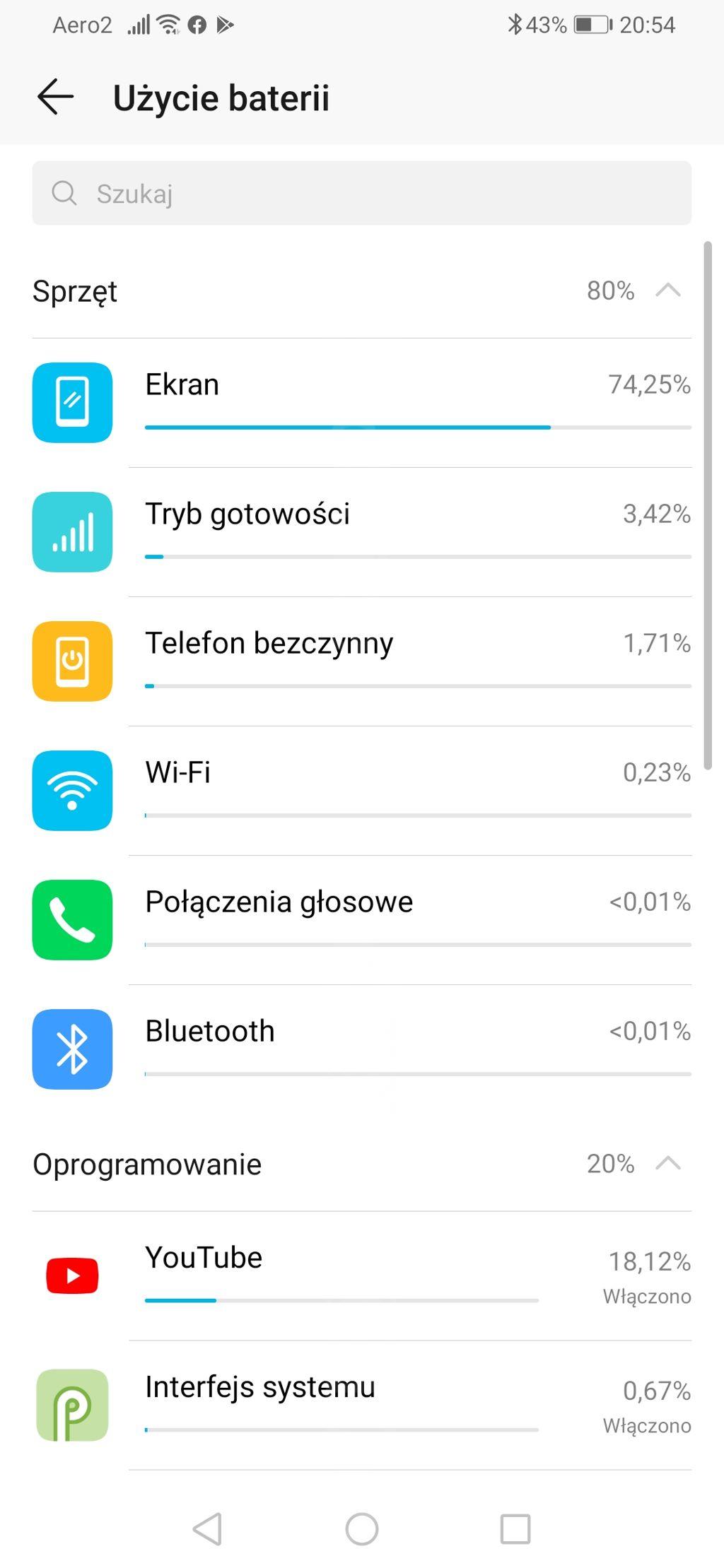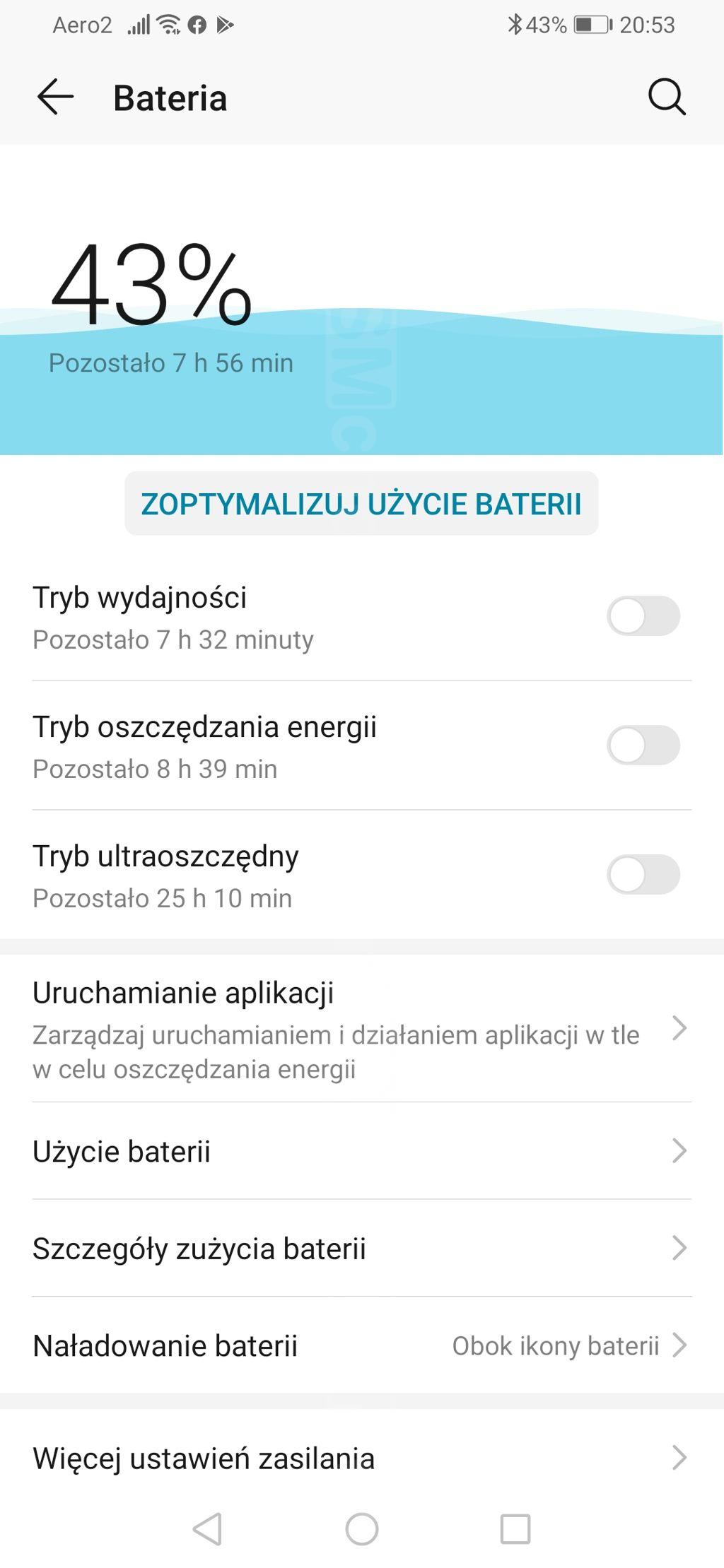 - 8 godzin w trybie czuwania - 2% baterii mniej.