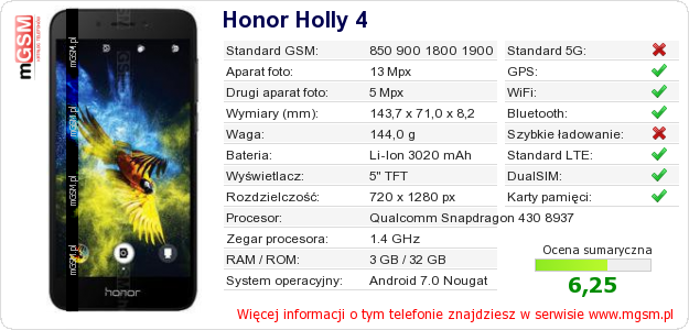 Dane telefonu Honor Holly 4 na Twojej stronie