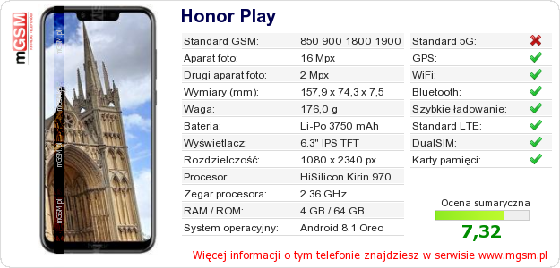 Dane telefonu Honor Play na Twojej stronie