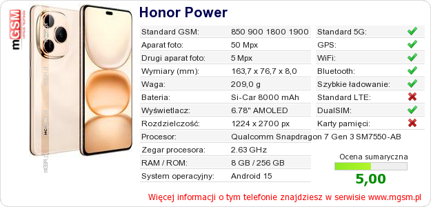 Dane telefonu Honor Power na Twojej stronie