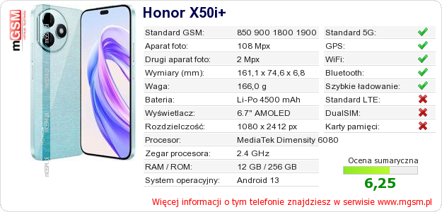 Dane telefonu Honor X50i+ na Twojej stronie