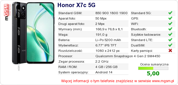 Dane telefonu Honor X7c 5G na Twojej stronie
