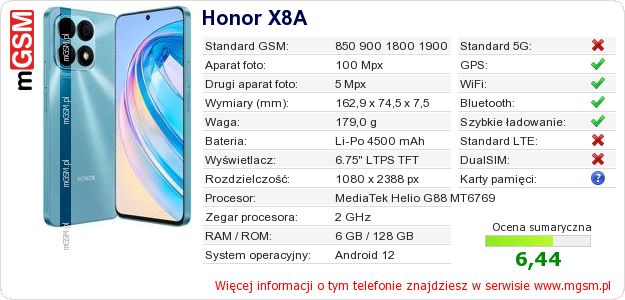 Dane telefonu Honor X8A na Twojej stronie