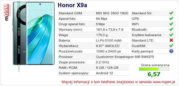Dane telefonu Honor X9a na Twojej stronie