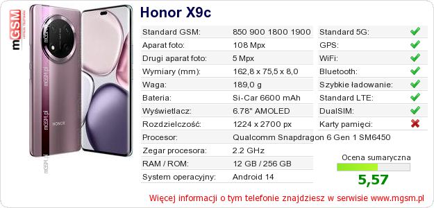 Dane telefonu Honor X9c na Twojej stronie