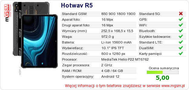 Dane telefonu Hotwav R5 na Twojej stronie