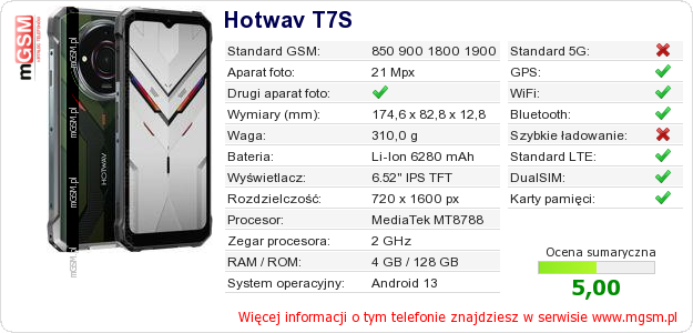 Dane telefonu Hotwav T7S na Twojej stronie