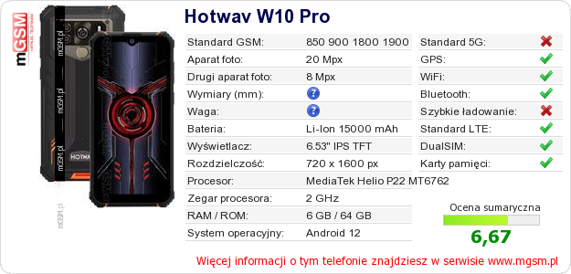 Dane telefonu Hotwav W10 Pro na Twojej stronie