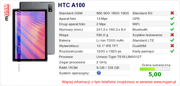 Dane telefonu HTC A100 na Twojej stronie