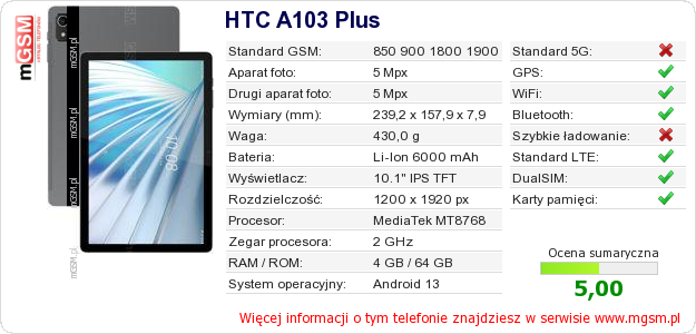 Dane telefonu HTC A103 Plus na Twojej stronie