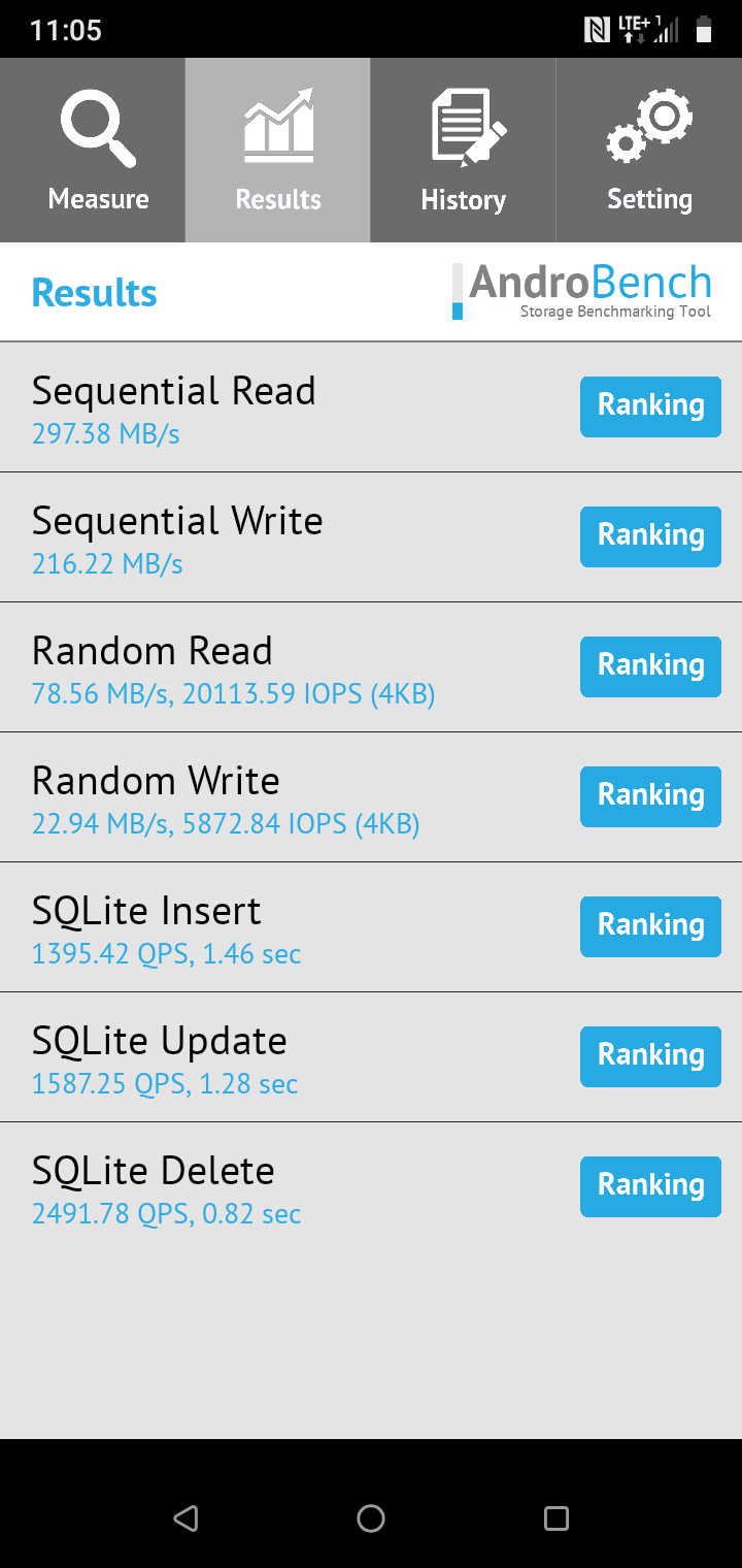 Smartfon oferuje 64 GB na dane i aplikacje - w praktyce po pierwszym uruchomieniu dla użytkownika mamy 55,13 GB wolnej przestrzeni. Więcej gigabajtów można uzyskać montując nośnik pamięci - microSD dzieli slot z jedną z kart SIM.