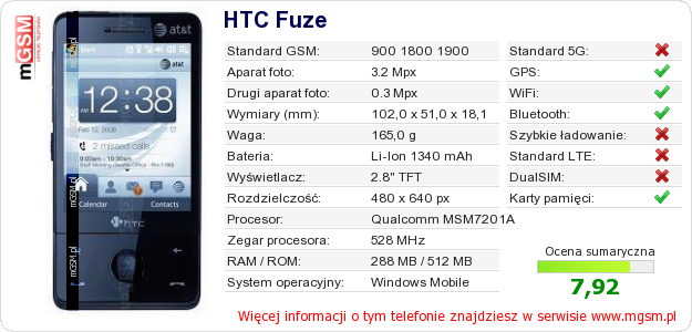 Dane telefonu HTC Fuze na Twojej stronie