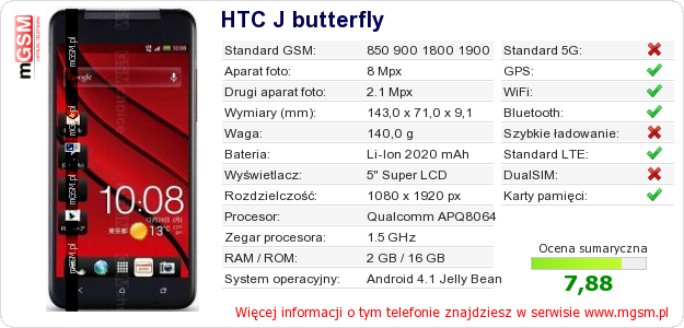 Dane telefonu HTC J butterfly na Twojej stronie
