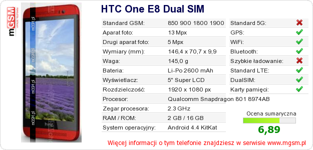 Dane telefonu HTC One E8 Dual SIM na Twojej stronie