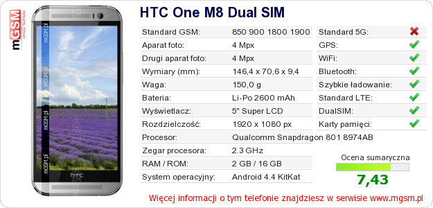 Dane telefonu HTC One M8 Dual SIM na Twojej stronie