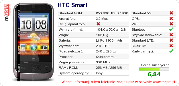Dane telefonu HTC Smart na Twojej stronie