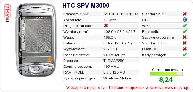 Dane telefonu HTC SPV M3000 na Twojej stronie