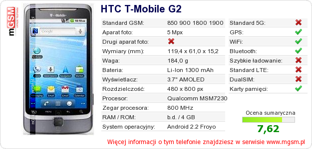 Dane telefonu HTC T-Mobile G2 na Twojej stronie