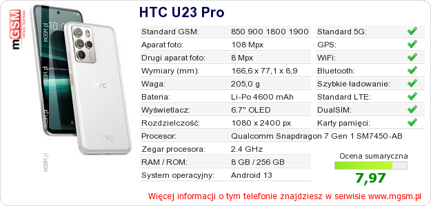 Dane telefonu HTC U23 Pro na Twojej stronie