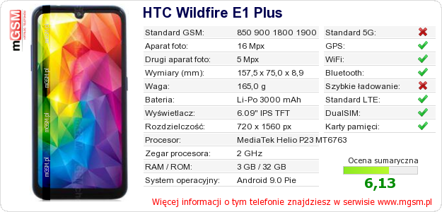 Dane telefonu HTC Wildfire E1 Plus na Twojej stronie