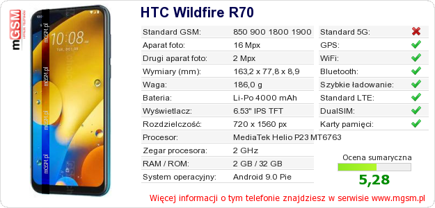 Dane telefonu HTC Wildfire R70 na Twojej stronie