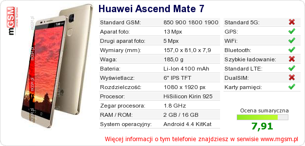 Dane telefonu Huawei Ascend Mate 7 na Twojej stronie