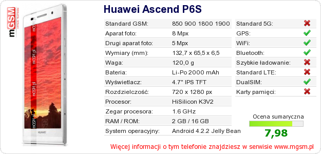 Dane telefonu Huawei Ascend P6S na Twojej stronie