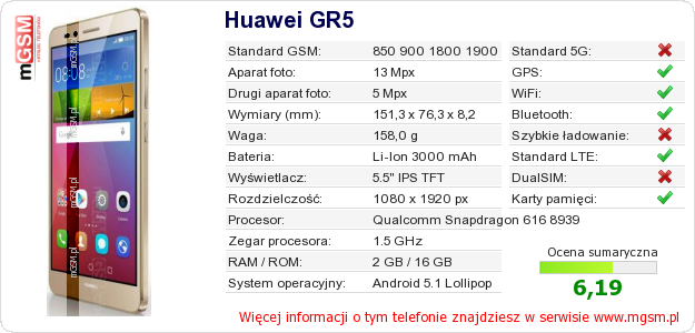 Dane telefonu Huawei GR5 na Twojej stronie