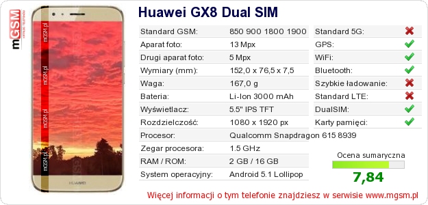 Dane telefonu Huawei GX8 Dual SIM na Twojej stronie