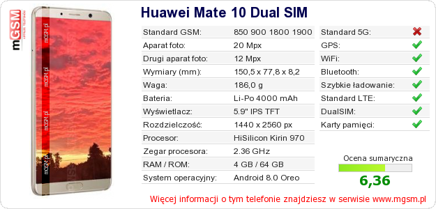 Dane telefonu Huawei Mate 10 Dual SIM na Twojej stronie