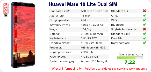 Dane telefonu Huawei Mate 10 Lite Dual SIM na Twojej stronie
