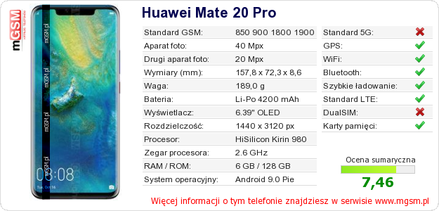 Dane telefonu Huawei Mate 20 Pro na Twojej stronie