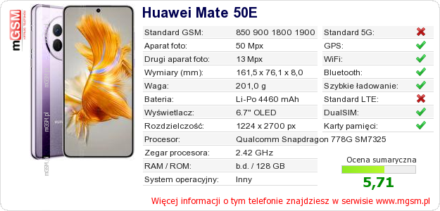 Dane telefonu Huawei Mate 50E na Twojej stronie