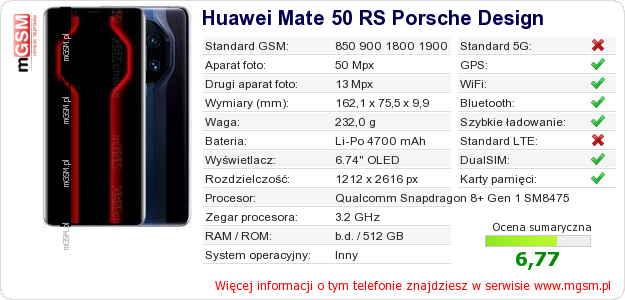 Dane telefonu Huawei Mate 50 RS Porsche Design na Twojej stronie