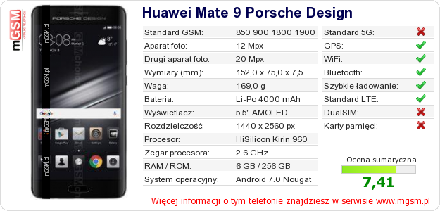 Dane telefonu Huawei Mate 9 Porsche Design na Twojej stronie