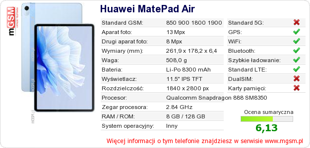 Dane telefonu Huawei MatePad Air na Twojej stronie