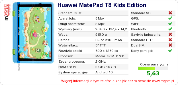 Dane telefonu Huawei MatePad T8 Kids Edition na Twojej stronie