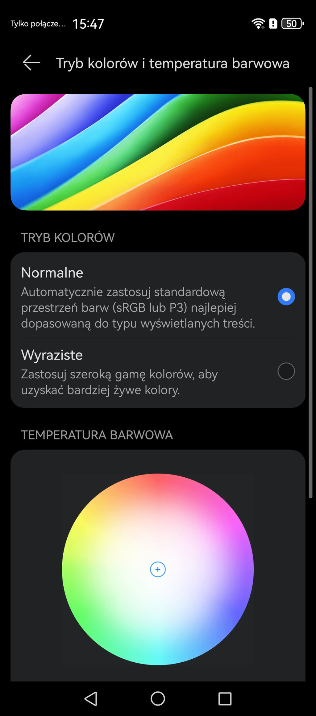 Panel wspiera pełną gamę P3 i wyświetla ponad miliard kolorów, co w połączeniu z kalibracją Huawei zapewnia naturalne, nasycone barwy. Tu też oczywiście można podziałać samemu i dostosować sobie nasycenie czy ciepłotę barw w ustawieniach.