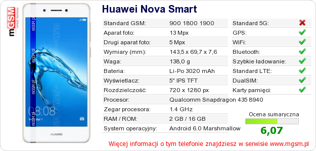 Dane telefonu Huawei Nova Smart na Twojej stronie